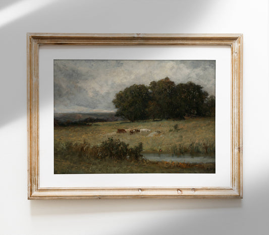 Vintage Farmhouse Painting | Moody Landscape Art Print