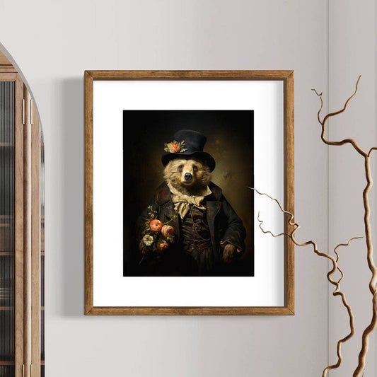 Charming Gentleman Bear with Pink Flowers Wall Art