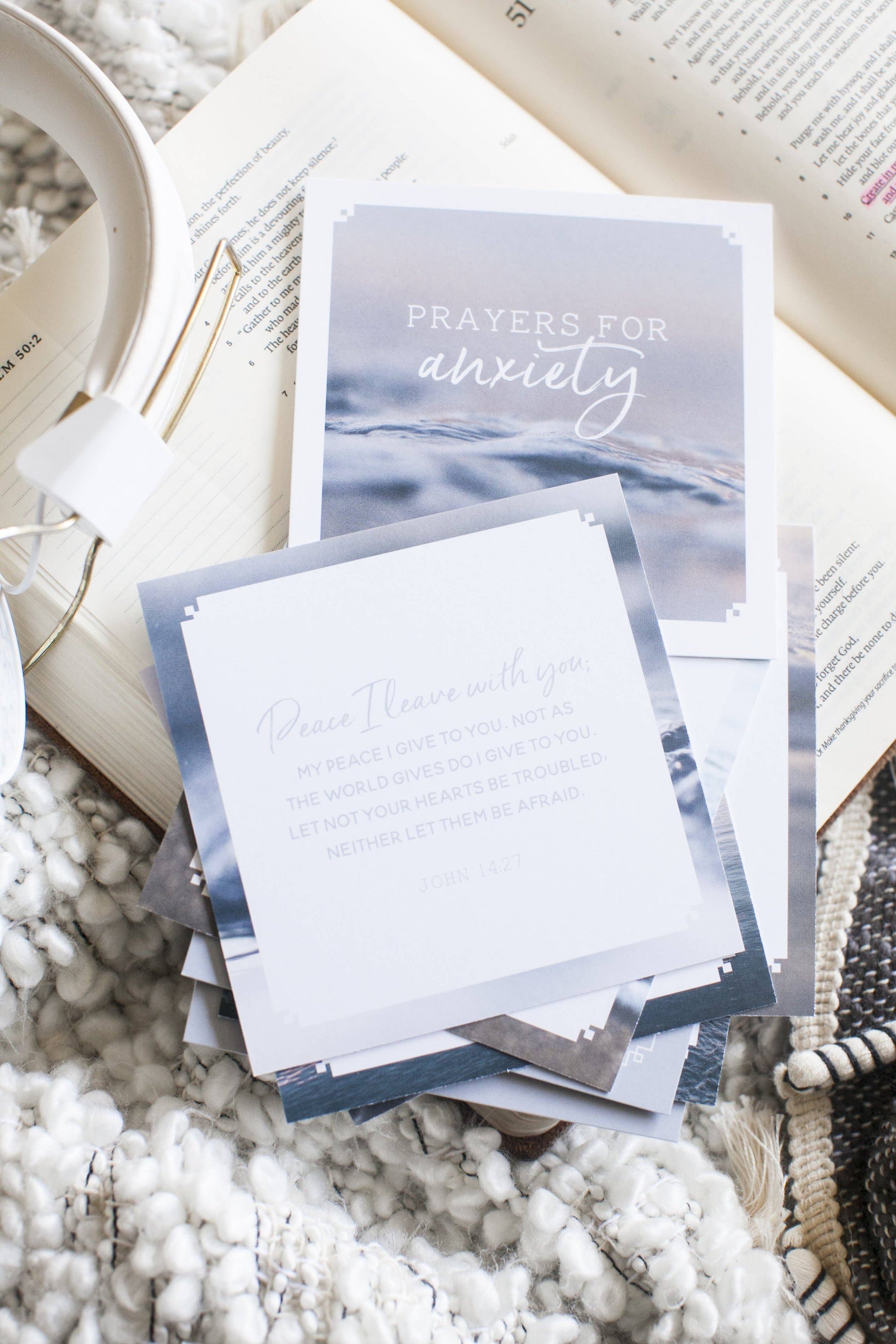 One side of the cards contains a Scripture that pertains to anxiety or worry, and the other side has a prompt to help you pray specifically and intentionally.